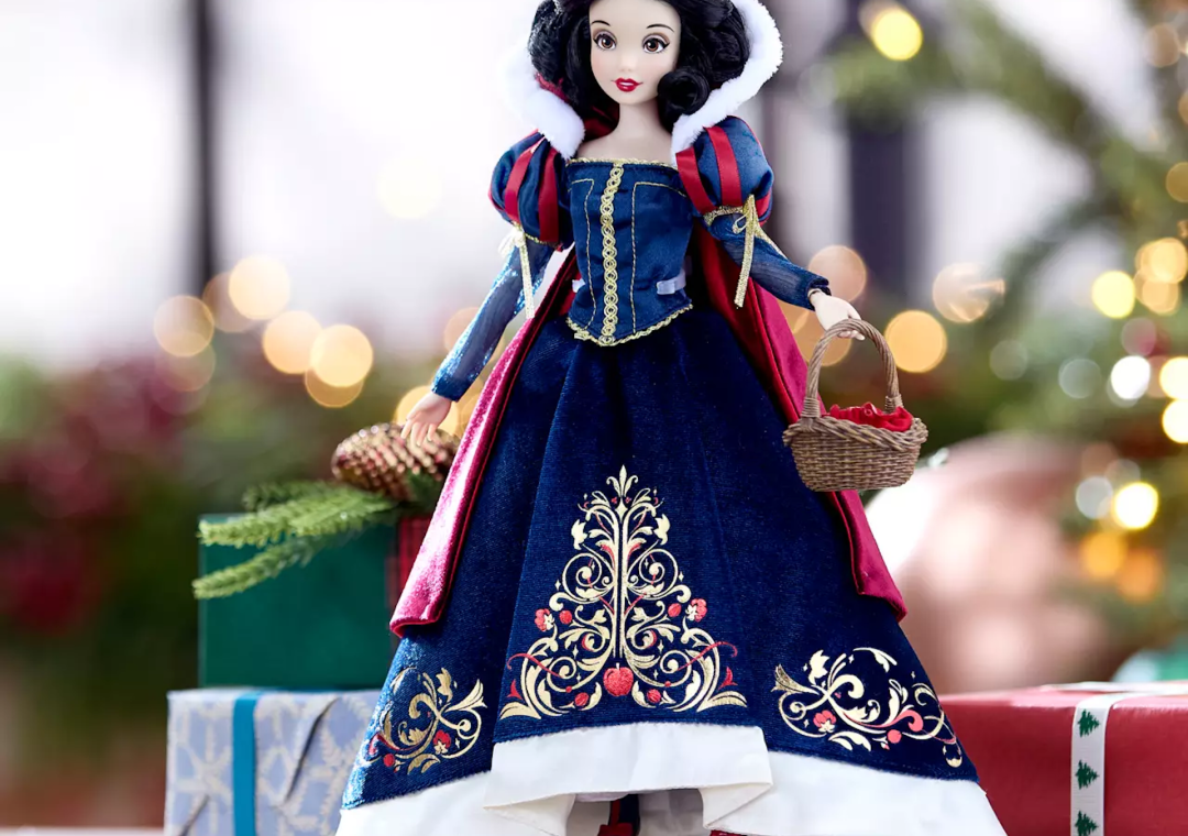 Capture the wonder of the holidays with the Snow White 2025 Holiday Special Edition Doll from Disney Store. This holiday keepsake doll is the merriest of all with ornate golden trims, satin lined velvet cape, and “fur”-trimmed and puffed sleeves – perfect for collectors and Disney Princess fans.