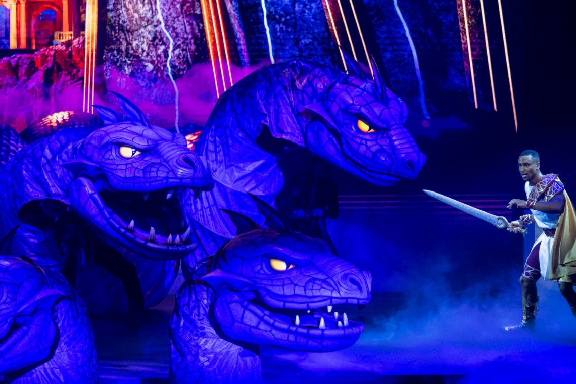 As you’re guided through the mythological world of ancient Greece, you’ll experience all-new, towering puppetry starting with Hercules’ battle of the multi-headed Hydra as the monster seemingly takes over the entire theater. Then, you’ll find yourself looking up — way up — during the hero’s final battle between the larger-than-life Titans of the Underworld as the monsters storm the stage with Disney Cruise Line’s debut of Disney’s patented exoskeleton technology.