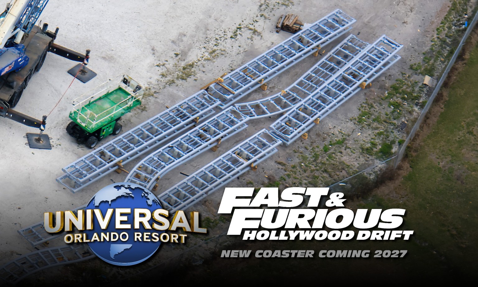 Track for the new roller coaster being built at Universal Orlando is now visible. Fast & Furious Hollywood Drift is set to open next year, replacing the former Hollywood Rip Ride Rockit coaster. Construction on structures related to this project has been progressing, while the coaster cars are being officially unveiled for the Universal Studios Hollywood counterpart.